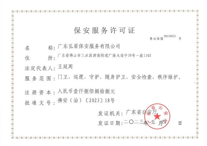 保安服務許可證正本